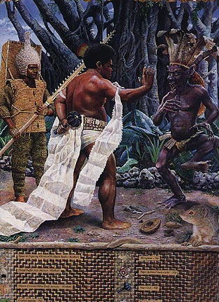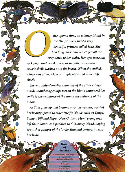 Sina and Tinilau are mythical pan-Polynesian figures on which this modern myth is based. The writer and the illustrator created this book for their children, Bianca Schreurs and Daniel Hereniko. It is a collector's item, with a limited number of copies available. |