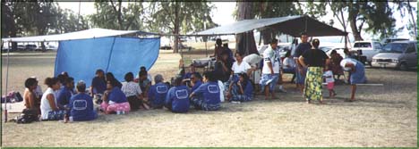 From Marie Dickenson in Sydney (17 May) The Rotuman Language Workshop has been running for three years in Sydney. This season it will be reopened by Professor Alan Howard & Dr Jan Rensel on 25th July at 1 pm at Alan Walker College at North Parramatta, Sydney. It will be followed by dinner from 5.30--9.30 p.m. The workshop is open to anyone who wants to learn Rotuman or refresh their Rotuman Language. The RL Workshop runs through our winter months and breaks up for summer. We open our workshops with devotion, to be led by Mr Pene Vafosu and Marie (Martoa) Dickinson. Alan & Jan will open the RL Workshop and Rev Fesaitu Marseu will give a welcome speech to new members. Then it's over to our wonderful Rotuman Language teacher, Mrs Kava Fonmoa, affectionately known to us and our children as Aunty Kava. Anyone who wants to join the workshop and/or dinner are most welcome. For more information, contact Martoa Dickinson (02) 9484 3609, Mr Pene Vafosu (02) 9625 3845 or Aunty Kava (02) 9599 4060. Rejieli Clayton will announce the RL Workshop at our Rotuma Day Celebration on Saturday 16th July in Sydney. We are very pleased to have Alan and Jan as our guests for the occasion. Alan first went to Rotuma in 1959 to do dissertation research when he was 25 years old. He spent a year on the island and studied many aspects of Rotuman culture: land tenure, education, leadership, health, myths & legends, adoption, etc. He published a book, Learning to be Rotuman, and many articles based on his research. In 1987 he returned with his wife, Jan Rensel, who conducted her own research on Rotuma over the next several years. Her PhD dissertation was entitled, "For Love or Money: Interhousehold Exchange and the Economy of Rotuma." In 1994 Alan published Hef Ran Ta" (The Morning Star), a biography of Wilson Inia, Rotuma's first Senator. Alan and Jan have also co-authored several articles about modern Rotuman society. Dr Howard is Professor, and Dr Jan Rensel is Adjunct Assistant Professor, in the Anthropology Department at the University of Hawaii. Alan & Jan created the Rotuma website in November 1996 and developed it into a place where Rotumans everywhere can keep up on the news, communicate with one another, and learn about their cultural heritage. In collaboration with Elizabeth Inia and others, they have seen through to publication two new books of importance for Rotuman language learning: a republication of Churchward's 1940 Rotuman Dictionary (with the addition of an English to Rotuman wordlist), and a book of Rotuman proverbs compiled by Mrs Inia. Both books are being published by the Institute of Pacific Studies at University of the South Pacific in Suva and might be available by the time of the workshop. I know many Rotumans join me in thanking Alan & Jan for the work they have done. We are honored to have them open our workshop this season. I thank them both on behalf of everyone for accepting the invitation. From Tefui Club, Honolulu (May 19, 1998) The Rotuman Association of Hawaii (Tefui Club) celebrated Rotuma Day at Kailua Beach Park on Saturday, 16 May. We had a great turnout; a number of Fijian guests (including the crew from Air Pacific) joined in the festivities. The food was, as always, plentiful, and included koua pig, a'ana, 'ikou puat kau, and fekei. Each family performed a dance or skit and the group performed a hafa just for the fun of it. Maxine Nataniela, wife of our President, Marseu Nataniela, brought club T-shirts which she designed and had made. To see what they look like click here. We hope other Rotuman communities had as much fun as we did, and we'd love to hear about it!