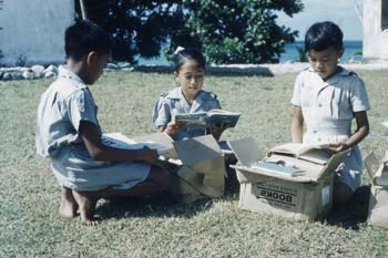 I was really impressed with how dedicated the teachers were and how bright the students. It was amazing when you think of it. The schools had very few books or supplies. There were no duplicating machines, so when a teacher needed to have copies of something for the students he or she had to make copies by hand. Yet despite these difficulties, Rotumans excelled at the national exams, with among the highest pass rates in all of Fiji. This, despite the fact they were competing against schools like Queen Victoria, Adi Cakabau, Marist, and other elite schools in Fiji. I was concerned about the lack of books and wanted to do something to help, so I wrote to the pastor at a church in California, suggesting that he initiate a book collection among school children as a project, and have the books sent to Rotuma. He was enthusiastic about the idea, and a couple of months later several boxes of books arrived. There weren't a whole lot of books, but at least there was enough to start a small library.